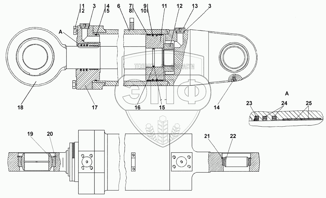 Каталог запасных частей к технике: Промтрактор ПК-12.02К. Гидроцилиндр d.250