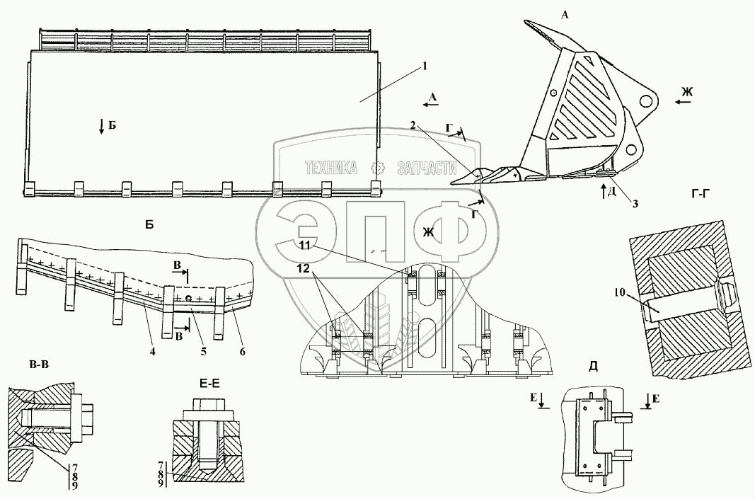 Каталог запасных частей к технике: Промтрактор ПК-12.02К. Ковш