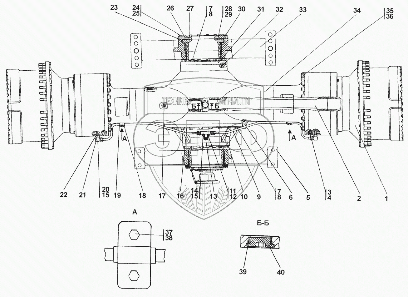 Каталог запасных частей к технике: Промтрактор ПК-12.02К. Мост задний