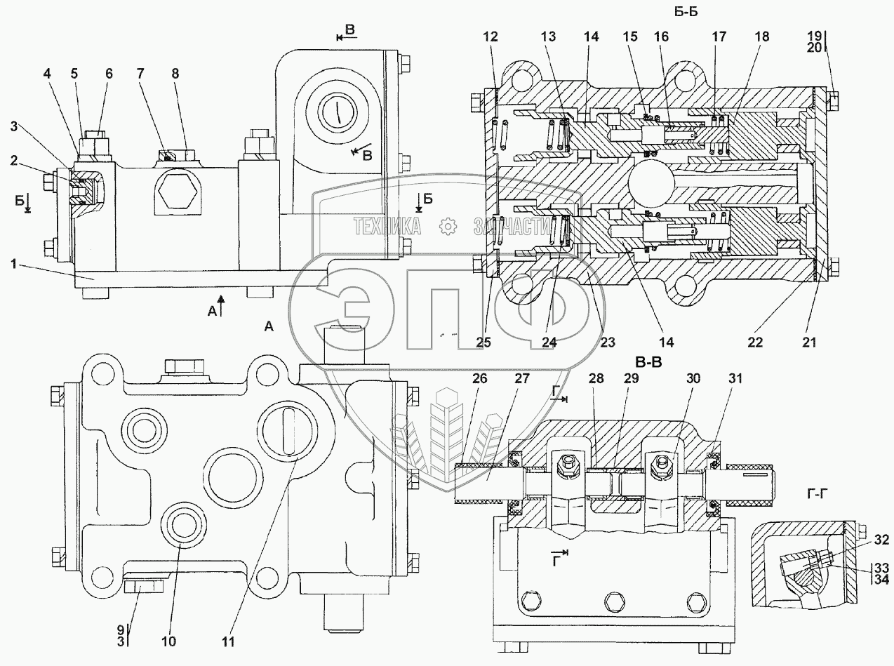 Каталог запасных частей к технике: Промтрактор ПК-12.02К. Распределитель тормозной