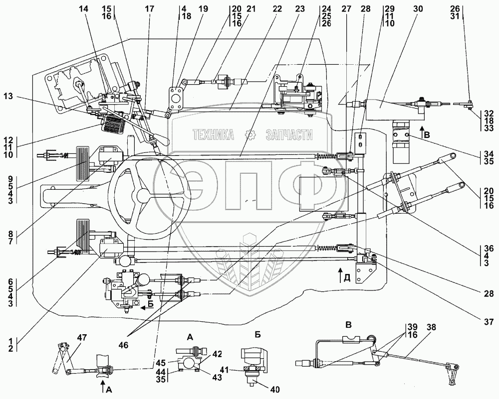 Каталог запасных частей к технике: Промтрактор ПК-12.02К. Управление трактором