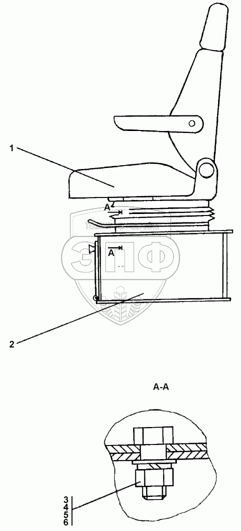 Каталог запасных частей к технике: Промтрактор ПК-12.02К. Установка сиденья