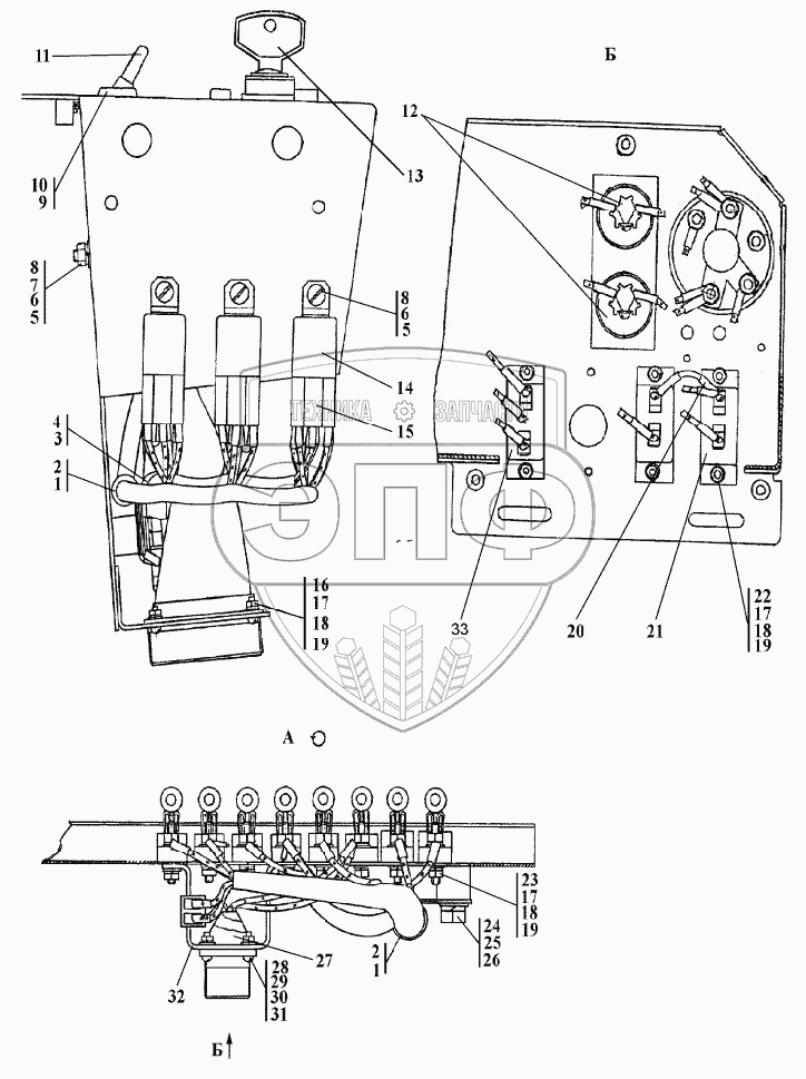 Каталог запасных частей к технике: Промтрактор Шасси ТП-20.02. Блок выключателей