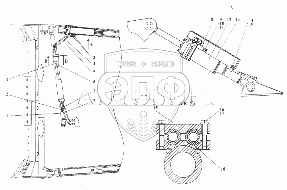 Каталог запасных частей к технике: Промтрактор Т-11.01Я. Гидросистема бульдозерного оборудования