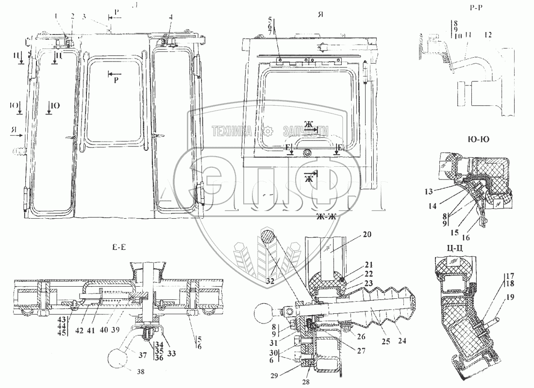 Каталог запасных частей к технике: Промтрактор Т-11.01Я. Кабина
