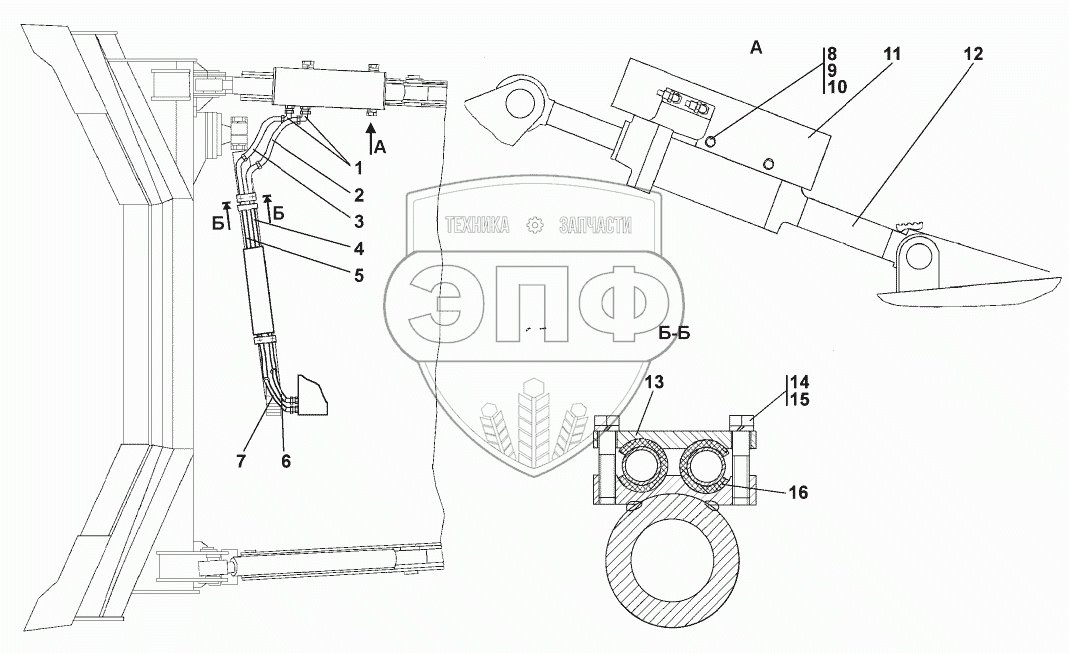 Каталог запасных частей к технике: Промтрактор Т-15.02K. Гидросистема бульдозерного оборудования