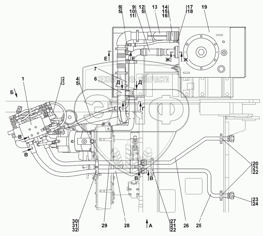 Каталог запасных частей к технике: Промтрактор Т-15.02K. Установка гидросистемы