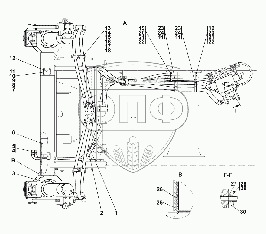 Каталог запасных частей к технике: Промтрактор Т-15.02K. Установка гидроцилиндров