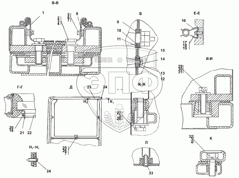 Каталог запасных частей к технике: Промтрактор Т-20.01К. 1101-111-08СП Кабина
