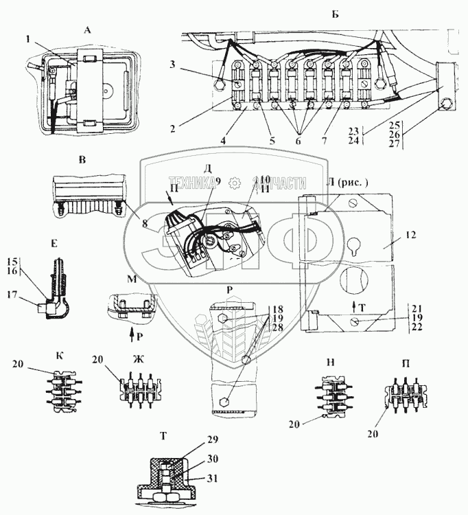 Каталог запасных частей к технике: Промтрактор Т-20.01Я. Блок выключателей