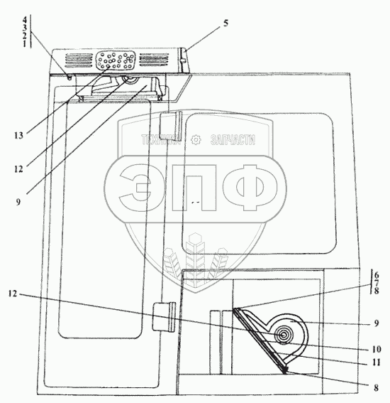 Каталог запасных частей к технике: Промтрактор Т-20.01Я. Установка вентиляторов кабины