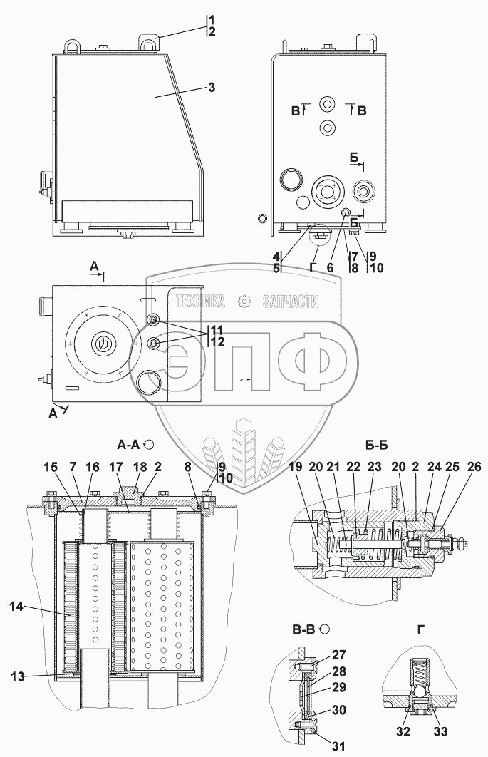 Каталог запасных частей к технике: Промтрактор Т-20.02К (Четра). Бак гидросистемы