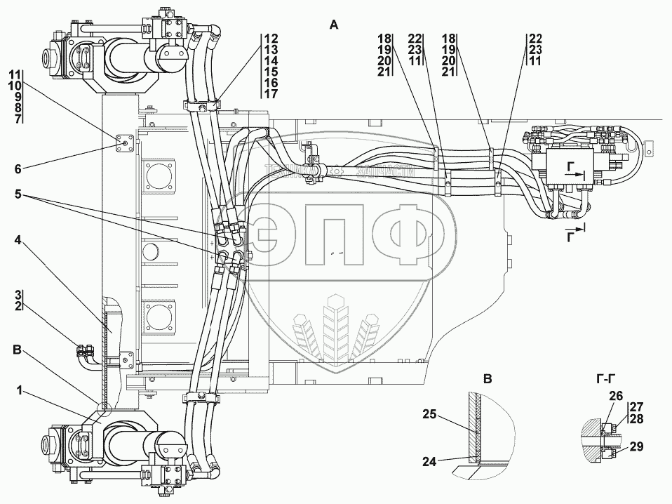 Каталог запасных частей к технике: Промтрактор Т-20.02К (Четра). Установка гидроцилиндров