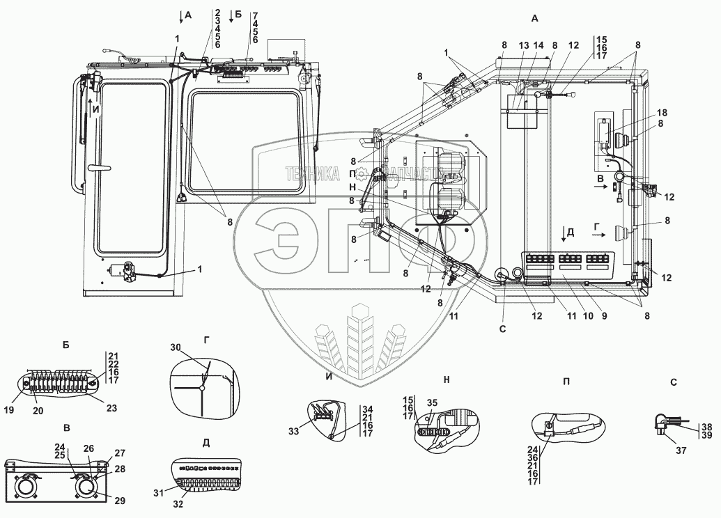 Каталог запасных частей к технике: Промтрактор Т-25.01К1. Электрооборудование крыши кабины