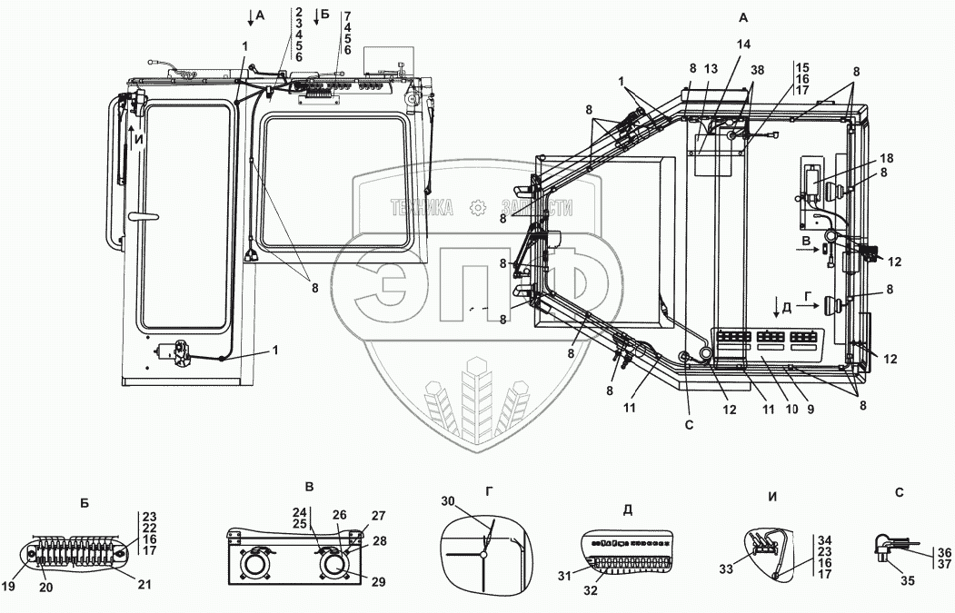 Каталог запасных частей к технике: Промтрактор Т-25.01К1. Электрооборудование крыши кабины