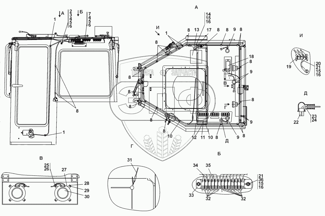 Каталог запасных частей к технике: Промтрактор Т-25.01К1. Электрооборудование крыши кабины