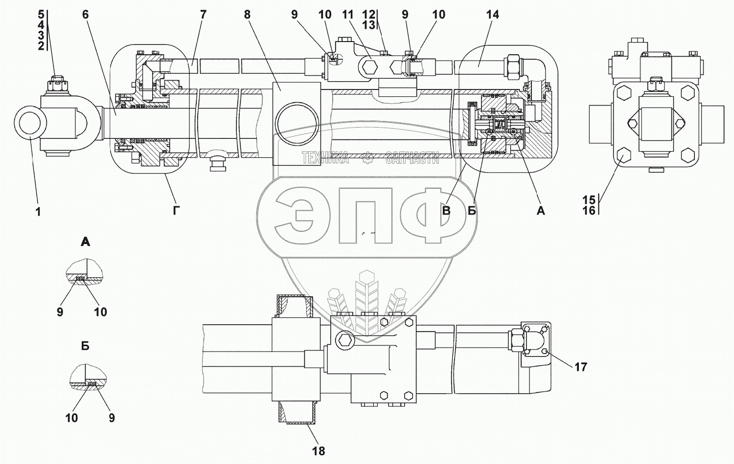 Каталог запасных частей к технике: Промтрактор Т-25.01К1. Гидроцилиндр