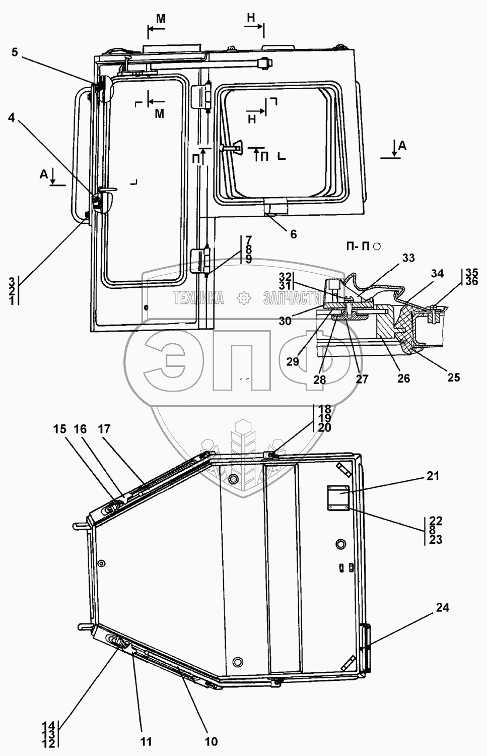 Каталог запасных частей к технике: Промтрактор Т-25.01К1. Кабина