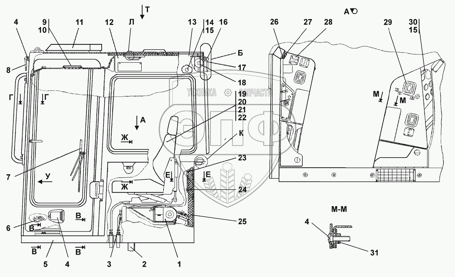 Каталог запасных частей к технике: Промтрактор Т-25.01К1. Кабина