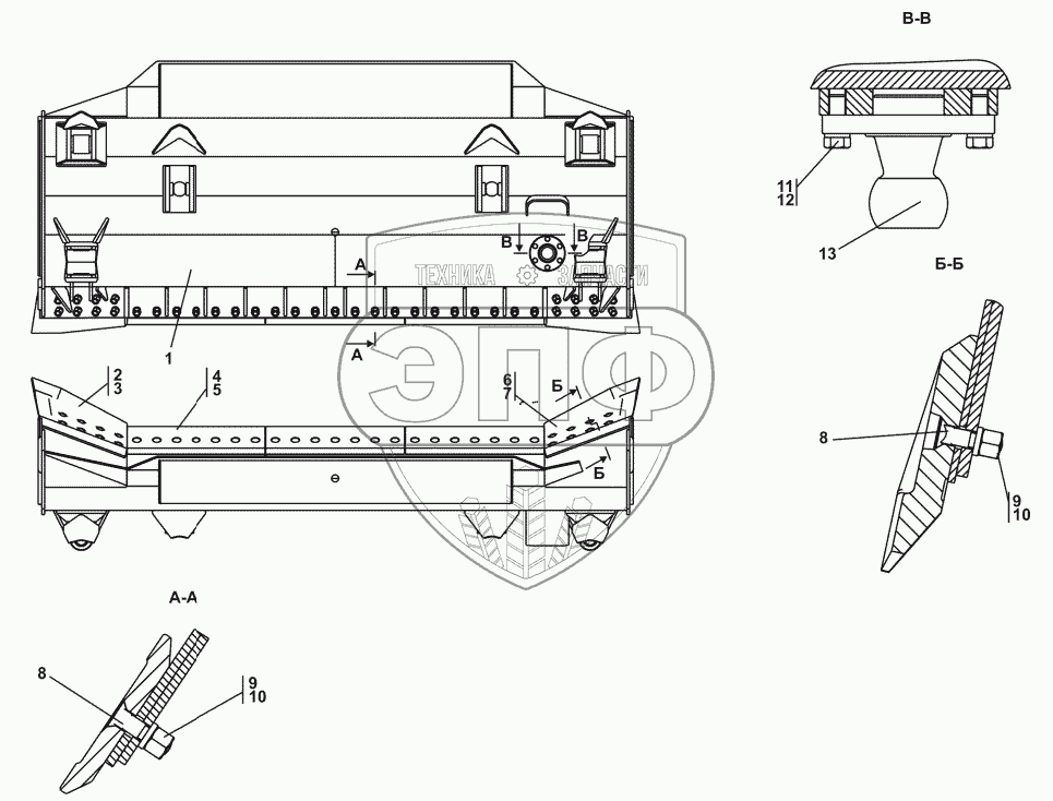 Каталог запасных частей к технике: Промтрактор Т-25.01К1. Отвал полусферический