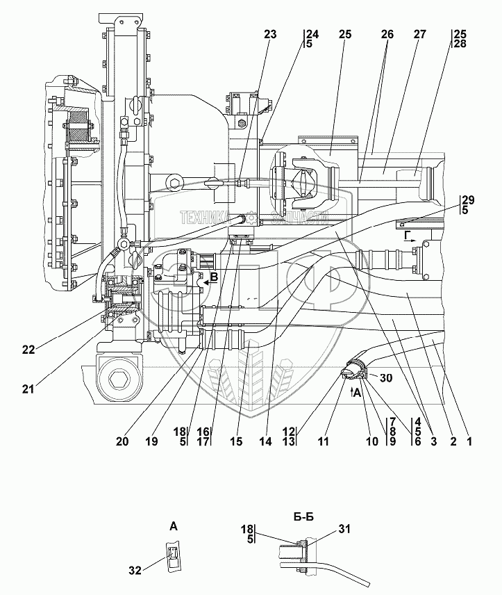 Каталог запасных частей к технике: Промтрактор Т-25.01К1. Установка трансмиссии
