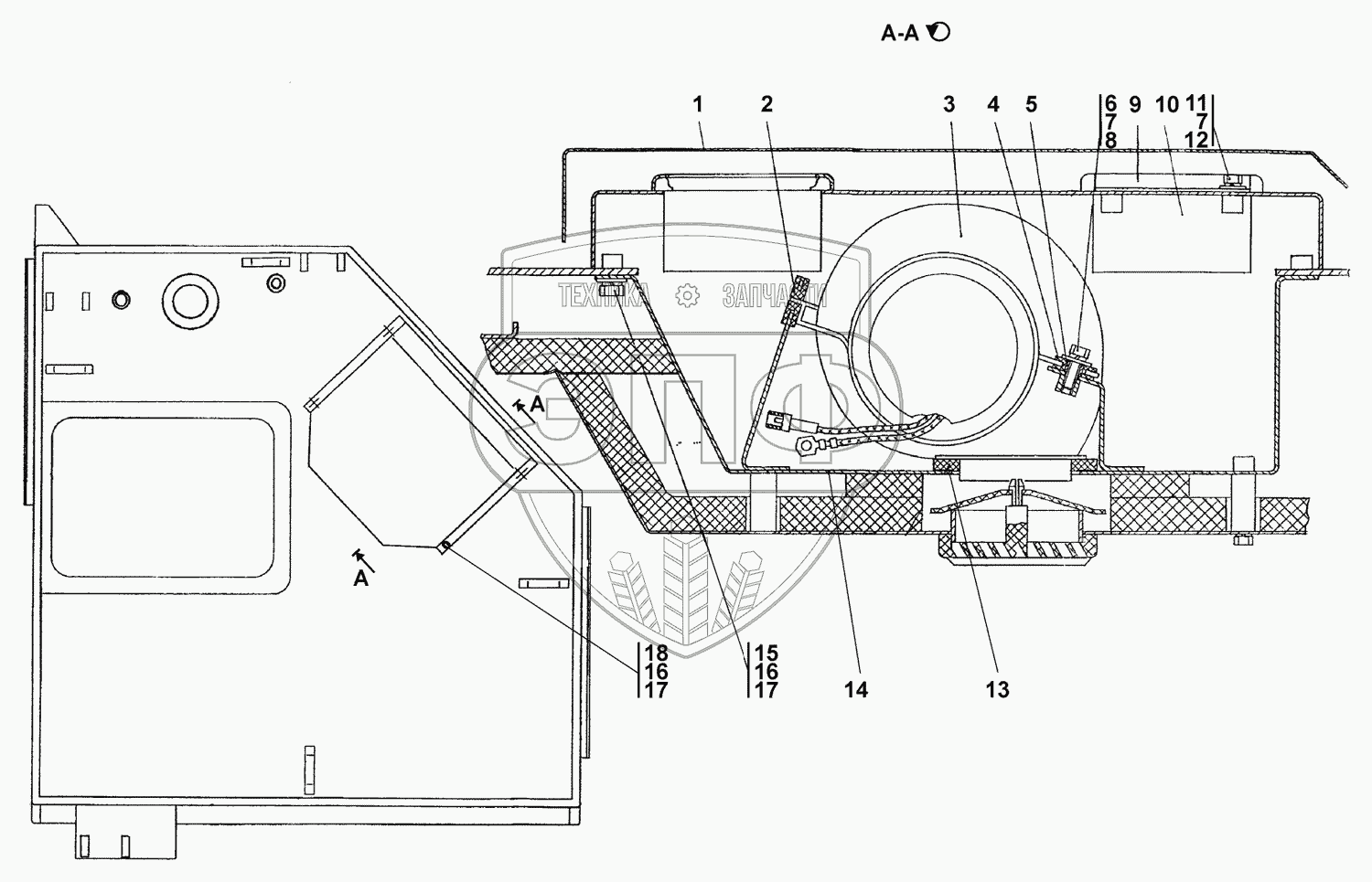 Каталог запасных частей к технике: Промтрактор Т-25.01К1. Установка вентиляторов кабины