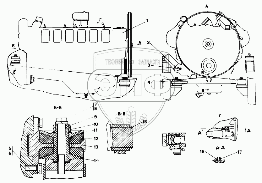 Каталог запасных частей к технике: Промтрактор Т-25.01Я. Установка двигателя