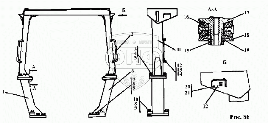 Каталог запасных частей к технике: Промтрактор Т-25.01Я. Установка защиты кабины