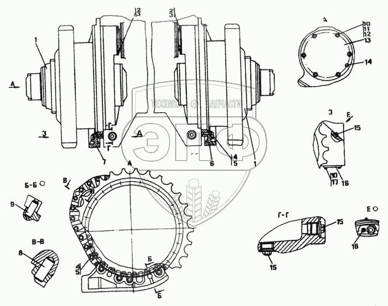 Каталог запасных частей к технике: Промтрактор Т-330. Передачи бортовые