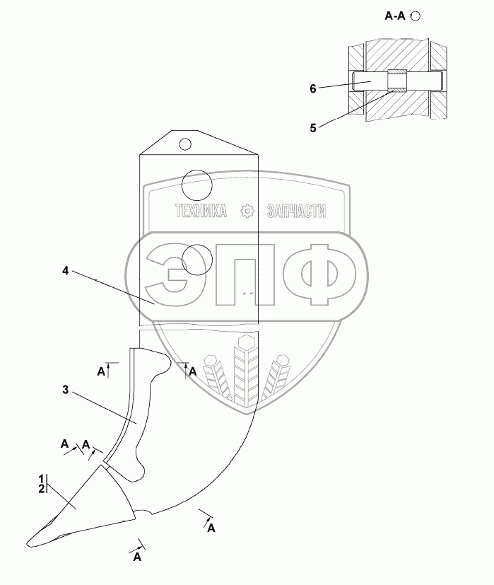 Каталог запасных частей к технике: Промтрактор Т-35.01К. 3501-97-180СП Зуб