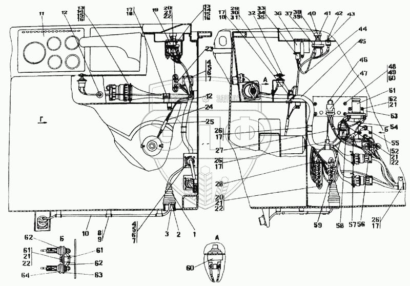 Каталог запасных частей к технике: Промтрактор Т-35.01Я. Электрооборудование пола кабины
