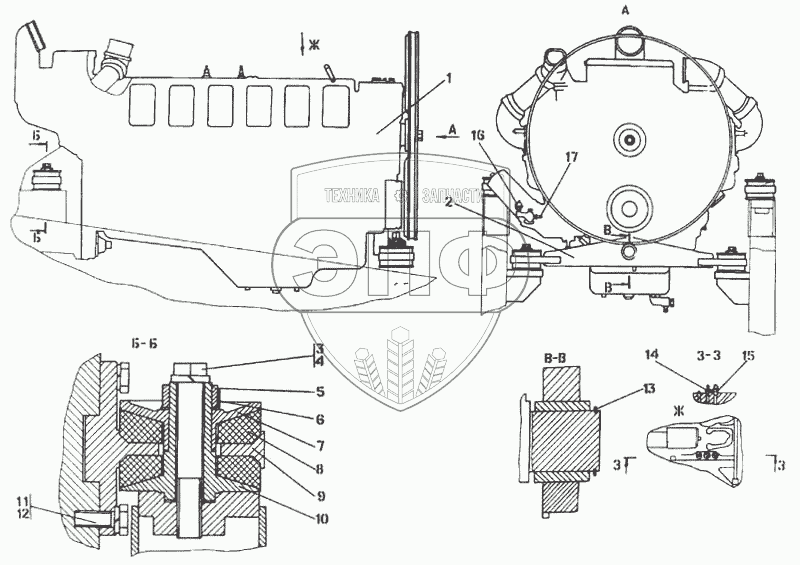 Каталог запасных частей к технике: Промтрактор Т-35.01Я. Установка двигателя ЯМЗ