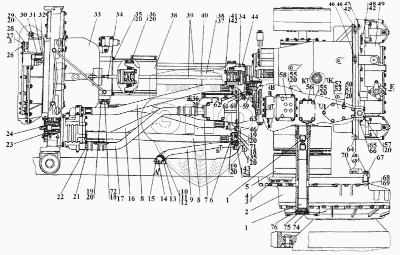 Каталог запасных частей к технике: Промтрактор Т-35.01Я. Установка трансмиссии