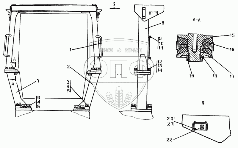 Каталог запасных частей к технике: Промтрактор Т-35.01Я. Установка защиты кабины