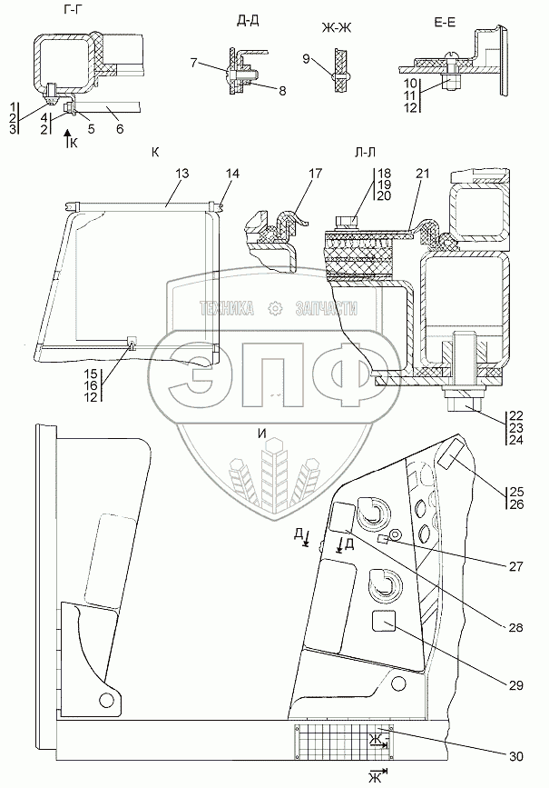 Каталог запасных частей к технике: Промтрактор Т-40.01К. 4001-111-01СП Кабина