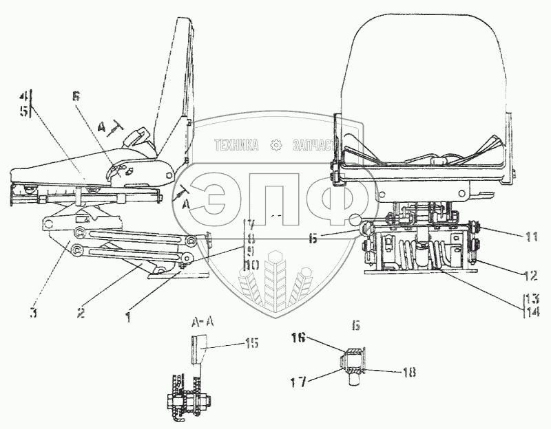 Каталог запасных частей к технике: Промтрактор Т-500. Сиденье