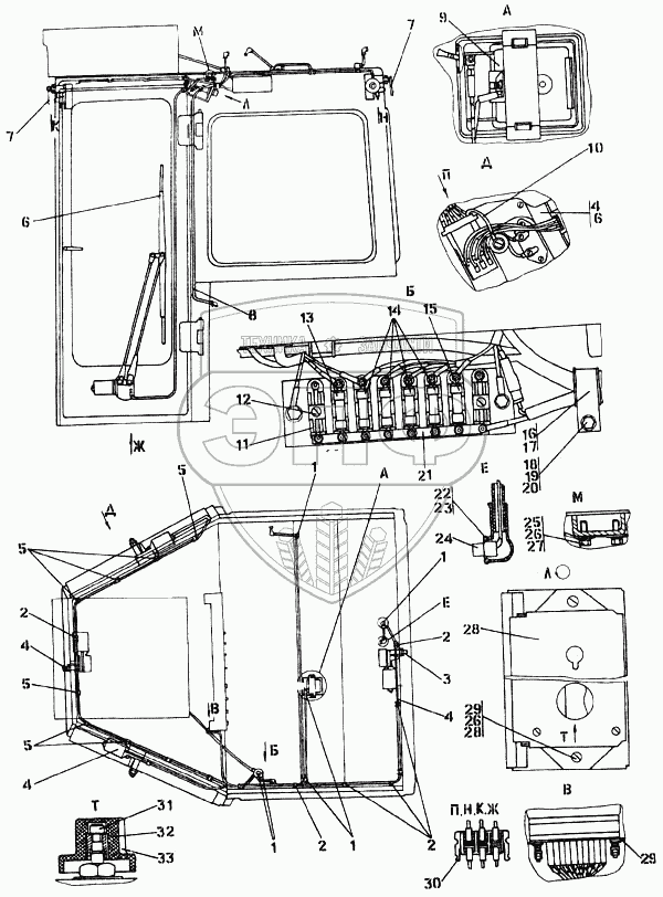 Каталог запасных частей к технике: Промтрактор Т-50.01. Электрооборудование крыши кабины