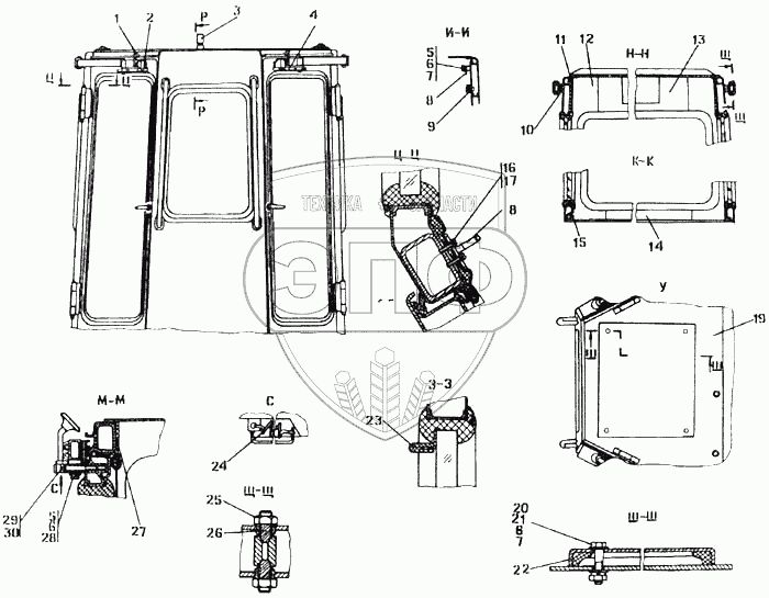 Каталог запасных частей к технике: Промтрактор Т-50.01. Кабина