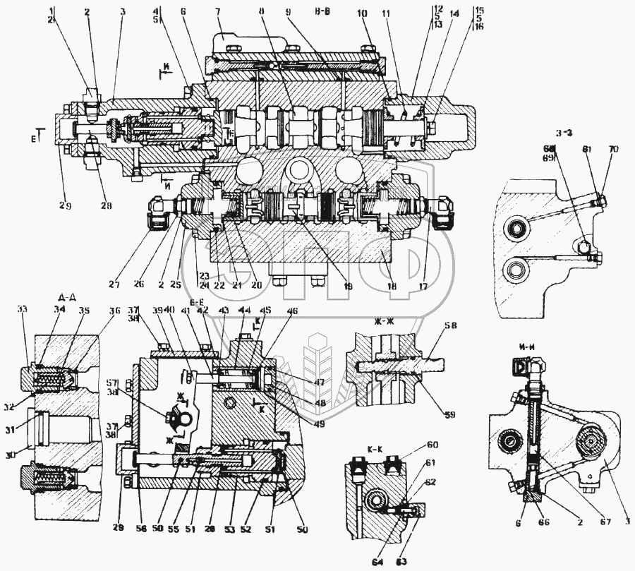 Каталог запасных частей к технике: Промтрактор Т-50.01. Распределитель 2701-26-40