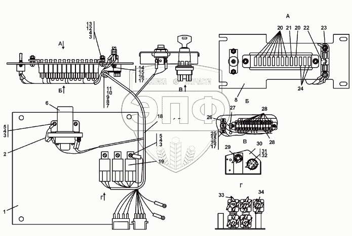 Каталог запасных частей к технике: Промтрактор Т-9.01Я. Блок выключателей