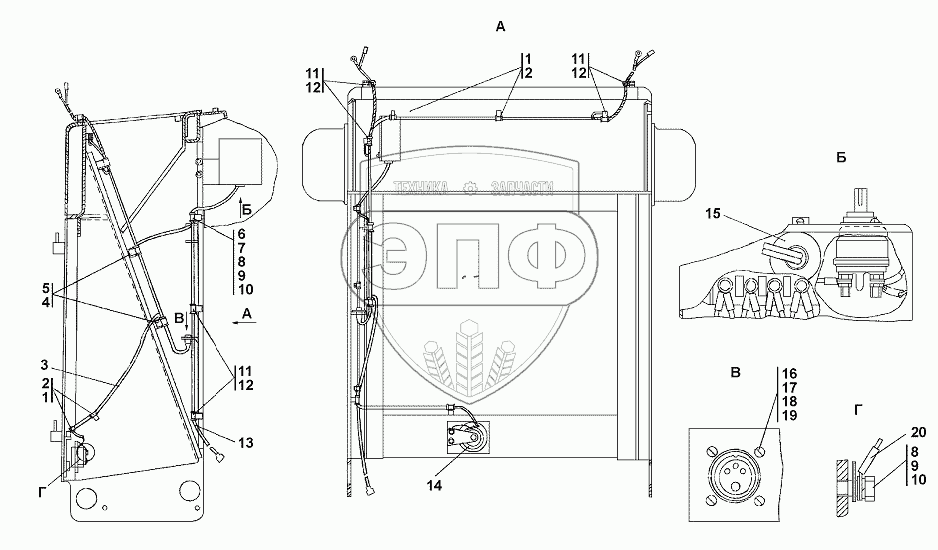 Каталог запасных частей к технике: Промтрактор Т-9.01Я. Электрооборудование передней облицовки