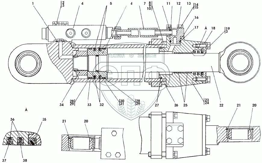 Каталог запасных частей к технике: Промтрактор ТГ-121Я. 311102-26-504СП Гидроцилиндр