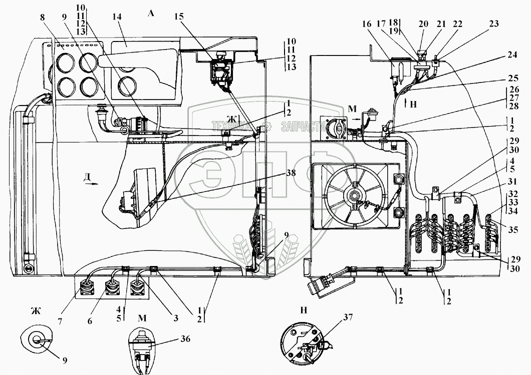 Каталог запасных частей к технике: Промтрактор ТГ-221КМ. Электрооборудование пола кабины
