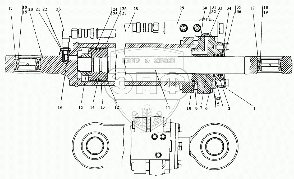 Каталог запасных частей к технике: Промтрактор ТГ-221КМ. Гидроцилиндр