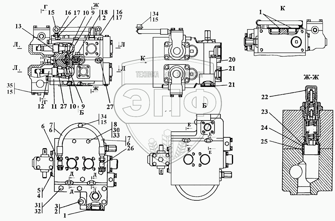 Каталог запасных частей к технике: Промтрактор ТГ-221КМ. Распределитель гидромоторов