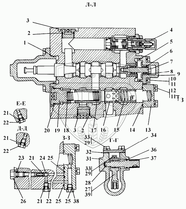 Каталог запасных частей к технике: Промтрактор ТГ-221КМ. Распределитель гидромоторов