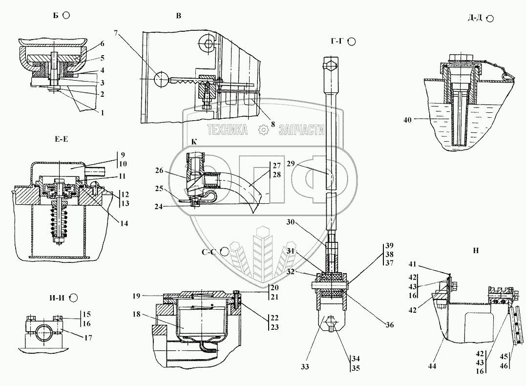 Каталог запасных частей к технике: Промтрактор ТГ-221КМ. Система охлаждения двигателя и трансмиссии