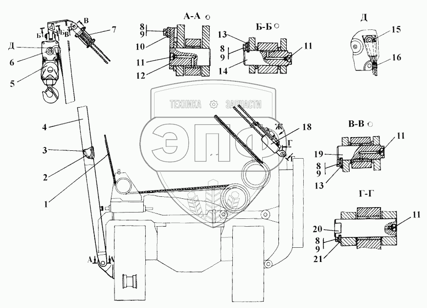 Каталог запасных частей к технике: Промтрактор ТГ-221КМ. Установка стрелы и полиспастов