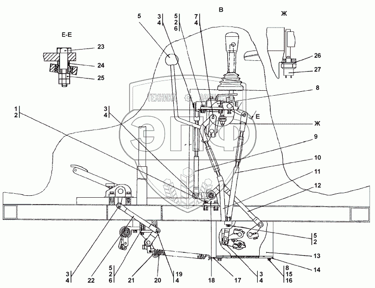 Каталог запасных частей к технике: Промтрактор ТГ-221Я. 312001-13-50СП Привод управления