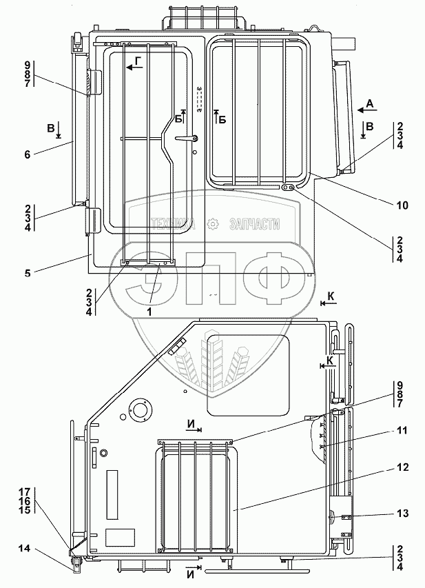 Каталог запасных частей к технике: Промтрактор ТГ-302Я. Кабина
